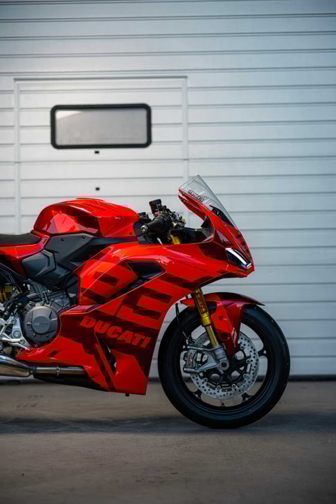 This special edition of the Panigale V2 was developed based on its role as a training bike for Marc Márquez. The dedicated equipment included in this version forms the ideal setup for hitting the track: racing-position handlebars, forged wheels, and more racing-inspired details to make the Panigale V2 even more effective on the curbs. The one-of-a-kind livery is inspired by the 2024 Barcelona post-season test, the first time on track “Todo Rojo”.