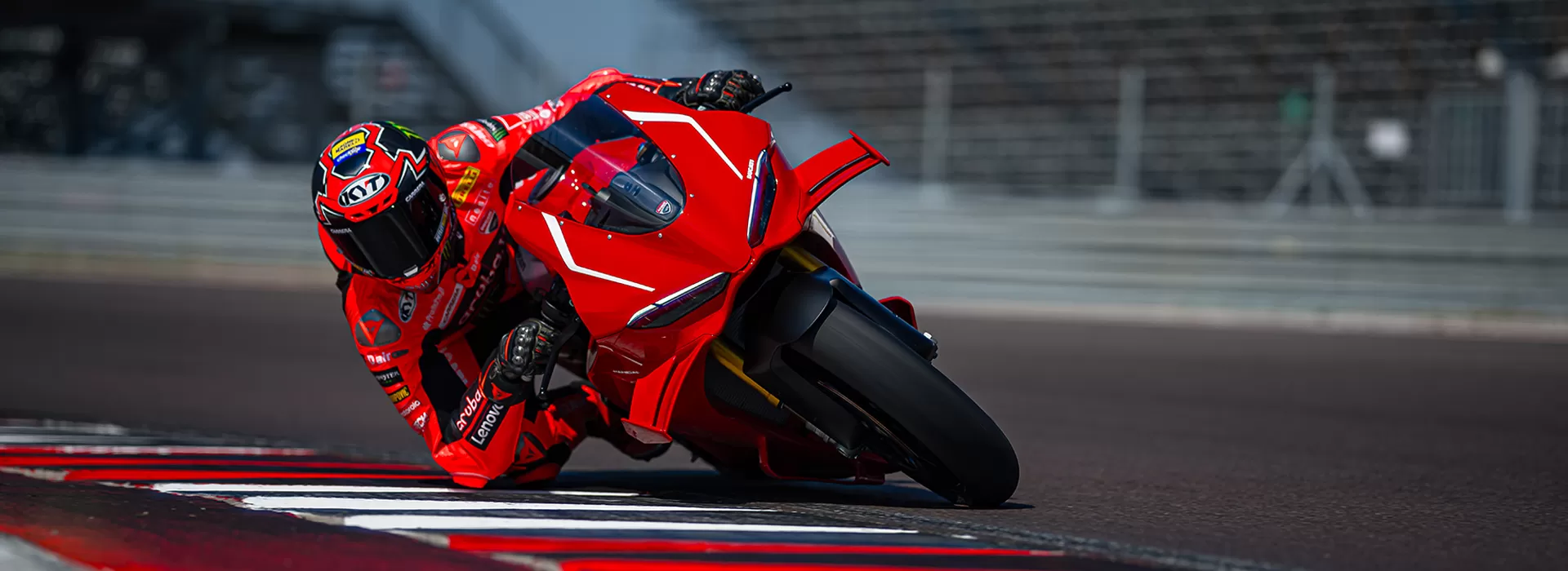 To further enhance the effectiveness of this bike on the track, Ducati Performance offers a wide range of accessories to complete and enhance your Panigale V4 R. The Ducati DAVC Race Pro software, available as a Ducati Performance accessory, was developed in collaboration with Ducati Corse engineers to optimize engine calibrations and control strategies, thus achieving maximum performance in track configuration and with slick or rain tyres.